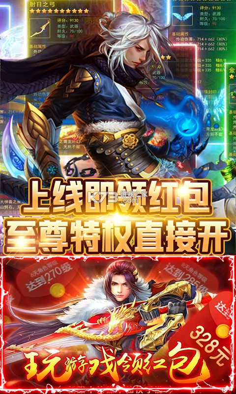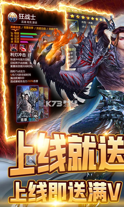 1.上线就送V11,8888元宝,38888绑元及500w金币
