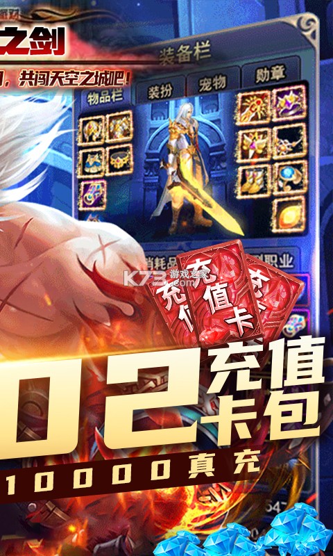 ★上线升级即获得VIP12,1000元充值卡包,1000W金币!在线挂机掉落充值卡碎片,打boss也可以打落充值卡碎片兑换真充卡,不充钱也能玩我们游戏!