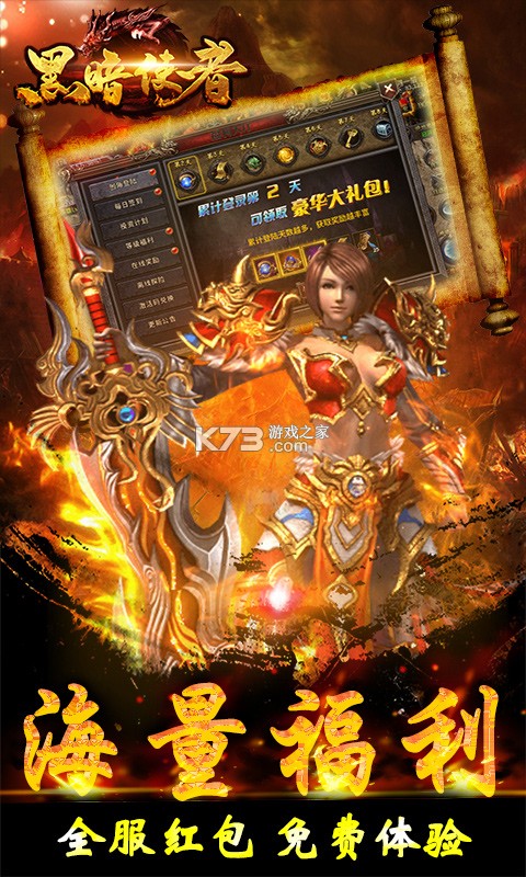 《黑暗使者无限元宝版》在这里开始你的尽情战斗,游戏的玩法十分的丰富,走进这个全新的暗黑国度,开始你的全新冒险,高额的游戏返利,让玩家可以氪金最少却得到最多的游戏福利,上线就可以得到更多的游戏福利,给你更多的游戏乐趣,走进这个传奇世界,开始你的战斗冒险,打败boss成为最强的王.