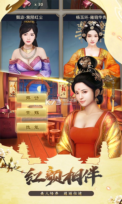 通过每个门客对应红颜,提升与红颜的亲密度,传唤红颜获得经验,升级红颜技能来提升门客。
