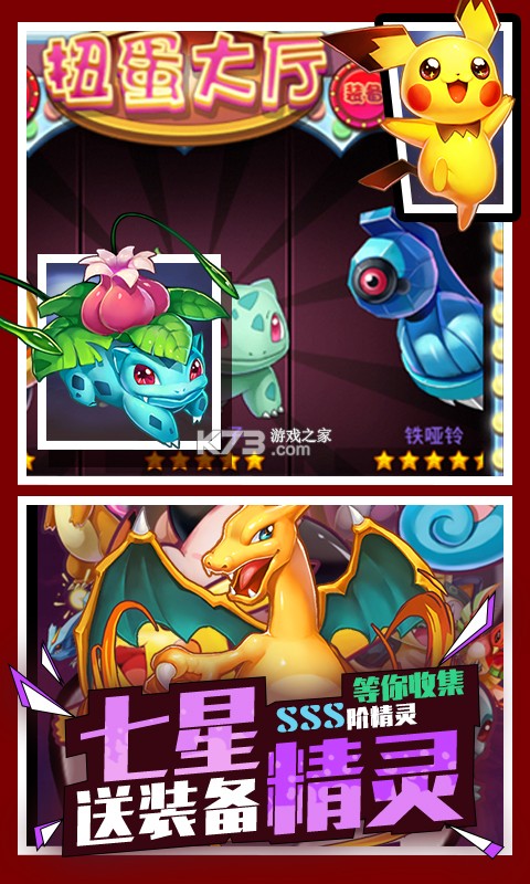 ★上百只精灵宝贝满足你的收集欲望,还有十万伏特的皮卡丘等你来抽,快来与你的小精灵并肩作战吧!