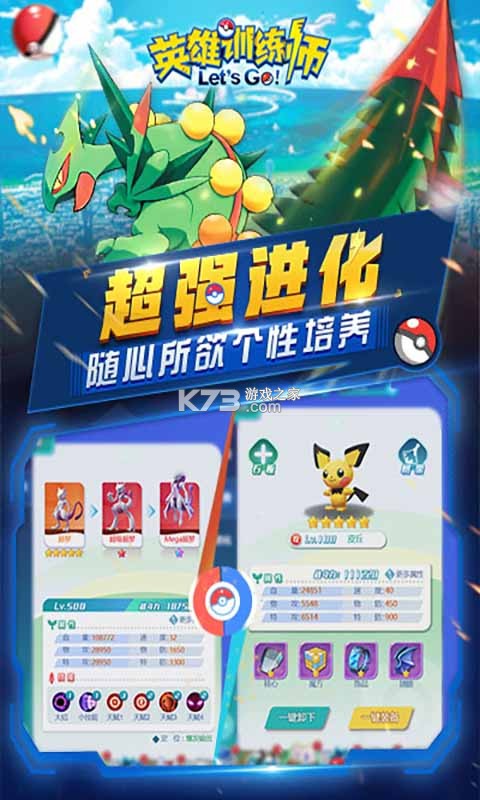 《英雄训练师》是一款以皮卡丘为题材的角色扮演手游,游戏中所有的人物以及萌宠随你选择,各种玩法应有尽有,还能邀请好友一起冒险,是一款宠物放置养成类游戏。