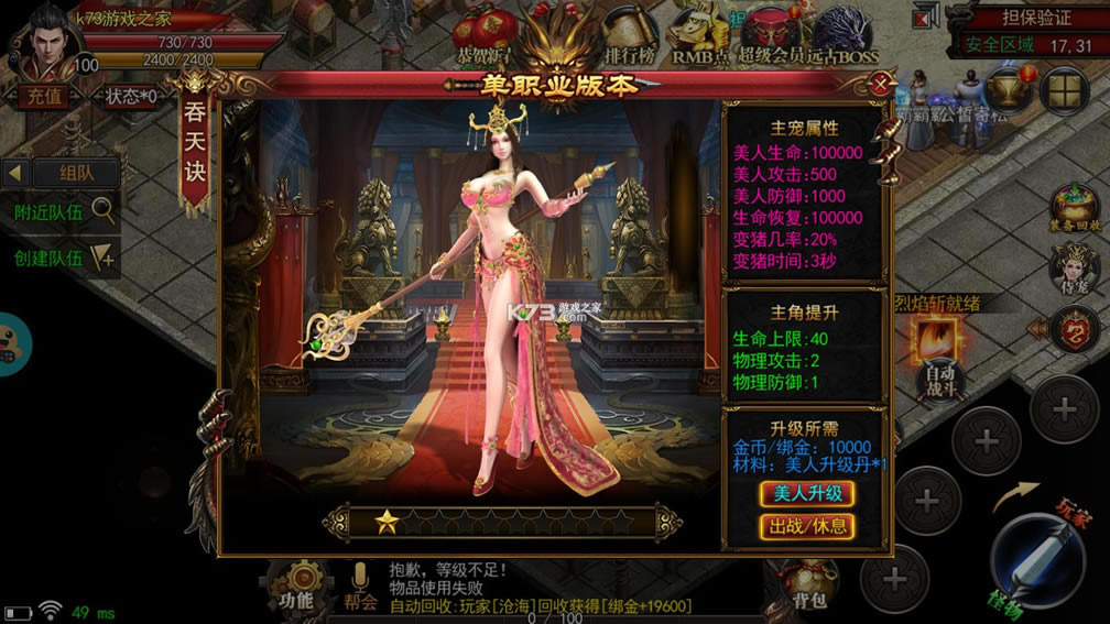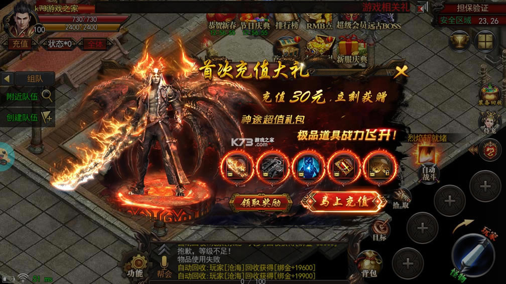 跨服PK,体验不变激情。 地下夺宝、BOSS战场、待你一战成名!