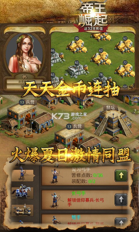 以古罗马为时代背景,可以选择需要建造和升级自己的城市,生产资源、研发科技、制造部队,让自己的战斗力变得更加强大。