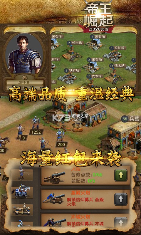 上线即可获得328充值劵,大型国战即时策略手游《帝王崛起-送328充值》战争题材的策略性手机游戏。