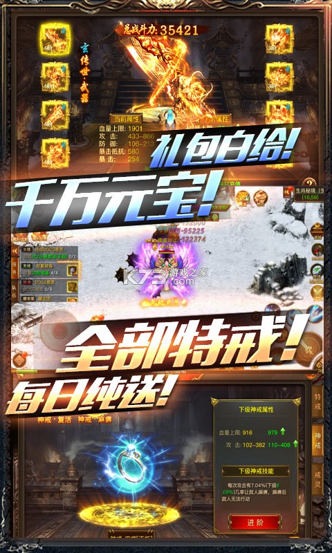 除此之外还有土豪装备,神兵等超多装备法宝。兄弟在聚热血争沙,赶紧和兄弟们一起进服吧!