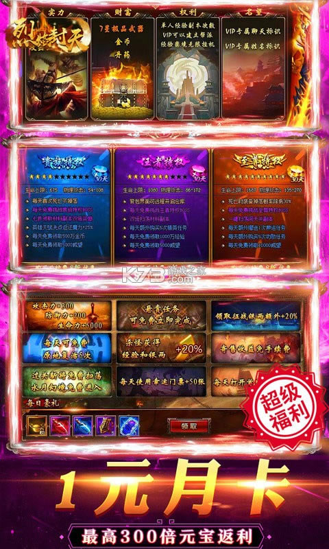 ★1元超低月卡,每日领8888元宝,登陆豪礼更有200万元宝免费领!