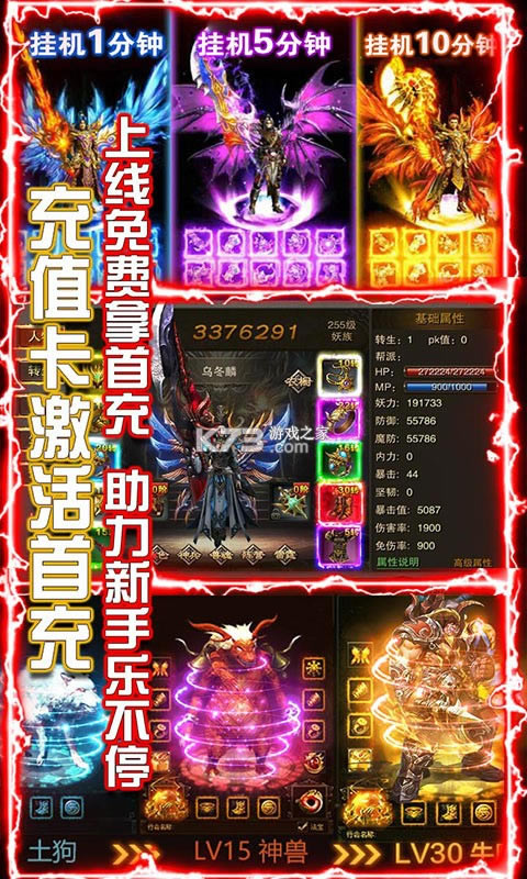 ★使用充值卡即可激活首充即可领取极品秒怪神器,赞助还有更多神装领取哦!