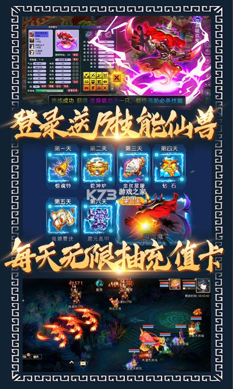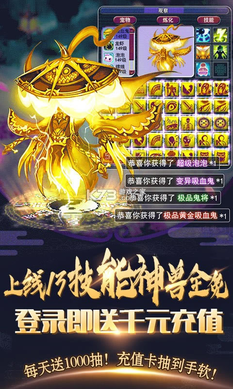 ★送充值免费激活首充!免费拿13技能仙兽!还有海量进阶资源,助你一路巅峰!
