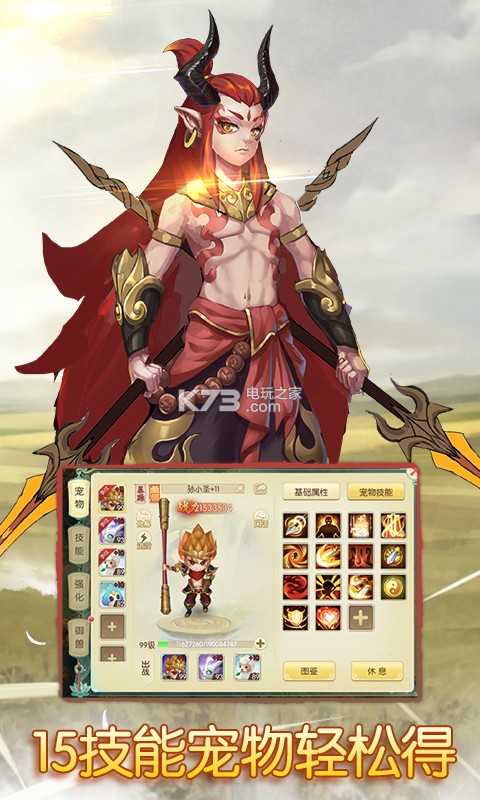 3、宠物比传统回合制更强大,摒弃复杂的宠物合成,普通宠物也可拥有15技能,更有逆天宠物神技,带你体验不一样的宠物养成。