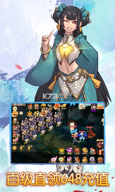 2、丰富的玩法,良好的交友环境,给玩家丰富愉悦的游戏体验。新人达到100级送648充值,第二天登陆送仙兽。