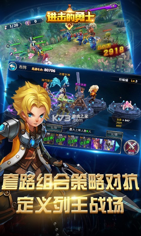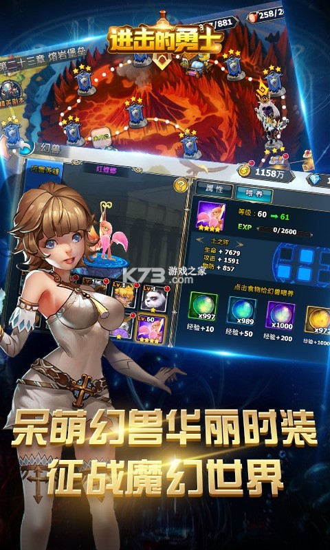 多种多样的英雄卡牌、绝无仅有的史诗幻兽,让你在联盟中更加拉轰夺目!手搓连招特色战斗!壕华活动倾情助阵!萌妹一路陪玩!还在等什么,征战天堂神域,勇夺末日王座,一切尽在《进击的勇士》!
