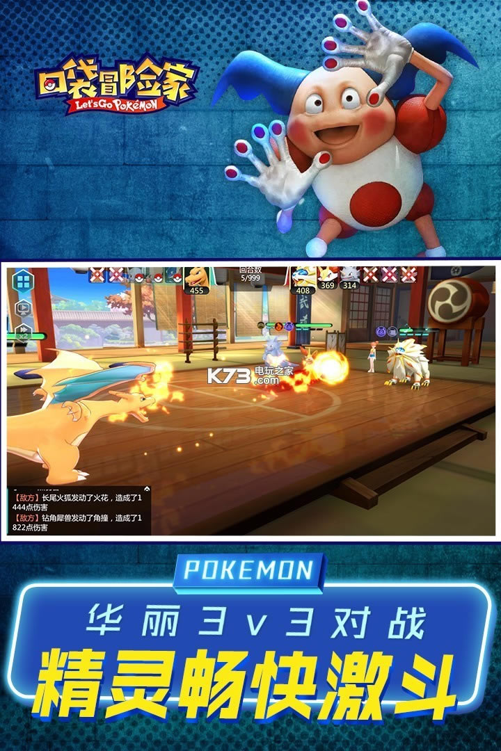 手机游戏适用游戏玩家即时对决,郊外探险,宠物训练师中间的PK,试炼场游戏玩法,绝对是争强好胜游戏玩家的最好演出舞台,比赛对决,热情PK。