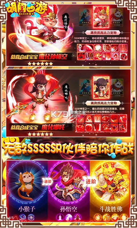 ★上线送VIP13,68888元宝,还有超强力SSSR伙伴——混世魔童,上来就能爽,各类礼包赠送全部大加强,不信你就去原版对比一下!登录还送百万元宝,福利超强!!