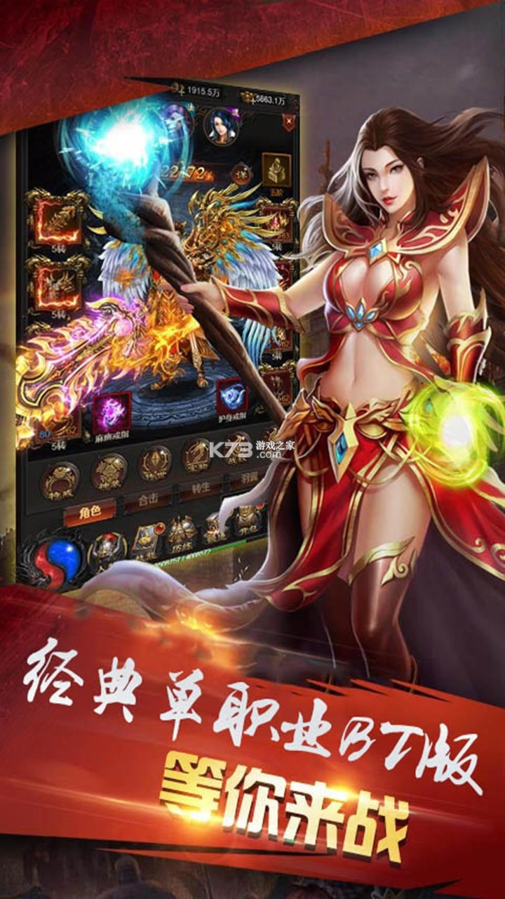 这是一款经典单职业爆装传奇,游戏中所有道具均可打怪掉落,轻松寄售,玩家可通过打装备赚钱,操作超级简单,路边小白也能玩。丰富的隐藏地图和BOSS资源待玩家探寻、多种攻城竞技,联盟争霸等玩法更具特色。游戏不但还原了传奇的经典元素,更融入了一系列的创新玩法。为玩家打造一个全新热血传奇世界,战、法、道三位合一单职业,三职业技能任你选择,却又相互制约。