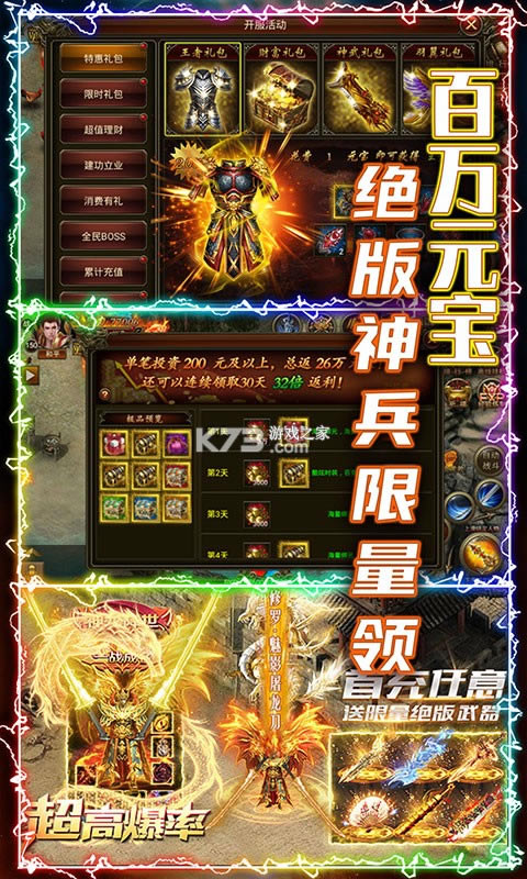 ★首充大礼包充值任意金额神兵利器伴您征战沙城,炫酷称号彰显您的个性