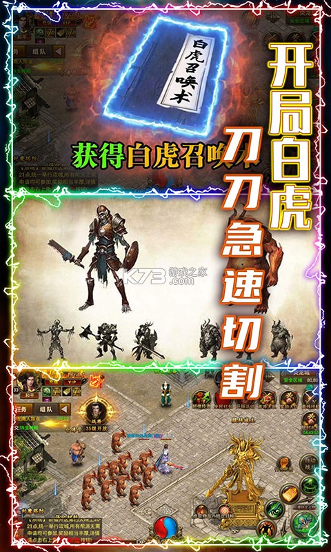 维持原道法战三大经典职业的同时更实现了职业平衡。上手简单,遍地BOSS,高爆率,每周攻沙告别枯燥的的刷怪,力求为玩家带来全新的游戏体验。