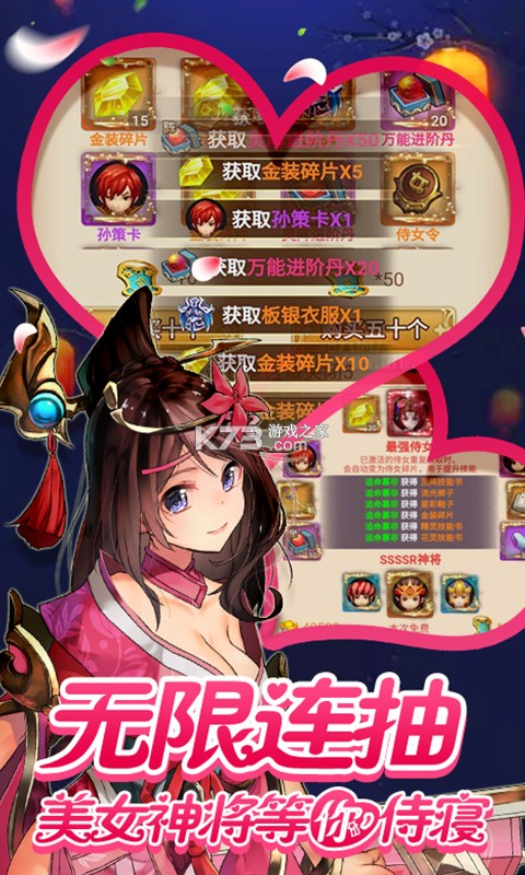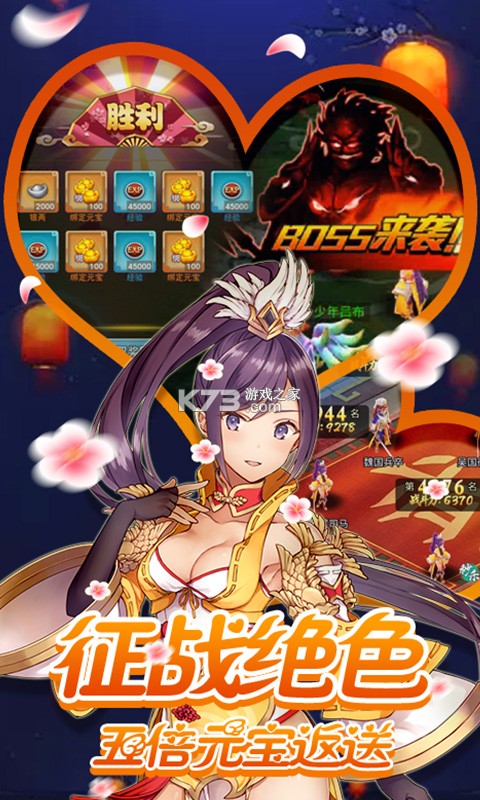游戏以传统回合制为战斗核心,加入神将洗练,侍女坐骑,跨服国战等特色玩法,带领你探寻丰盛的三国文化大餐。
