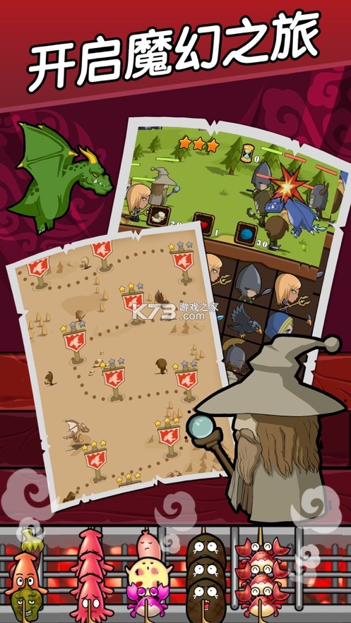 三位生活在魔幻世界的英雄为了追捕魔龙,不幸被黑魔法击中变成了食材,并被传送到现代世界当烧烤,通过店长您的帮助,历经曲折,最终回到魔幻世界复仇.