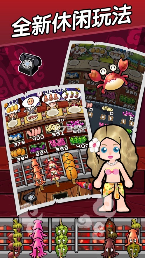 (=^ω^=)玩家是一家烧烤店店长,根据客人的需要烤制不同的食物,为避免玩法单一,整个烧烤过程采用几种全新的休闲玩法,基本上每关都不同