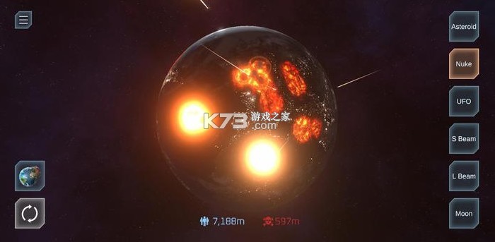 允许玩家使用各种不同的武器来摧毁地球。其中包括核导弹、激光和小行星。
