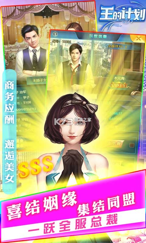 《王的计划》是一款休闲养成游戏,游戏内可以免费领取各种礼包,美女秘书,明星老婆,豪车唾手可得, 模拟经营,走上人生巅峰