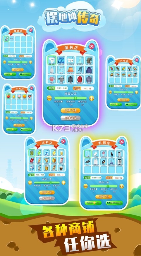 水果摊、服装摊、饮料店、烧烤摊随意选择,从事不同的项目;