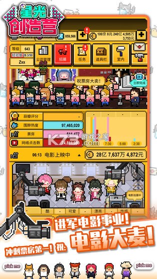 这是一款明星养成类的女生像素风格的明星的养成经营的游戏,游戏中星光创造101。是不是很感兴趣呢,喜欢的朋友快来下载试一试吧!