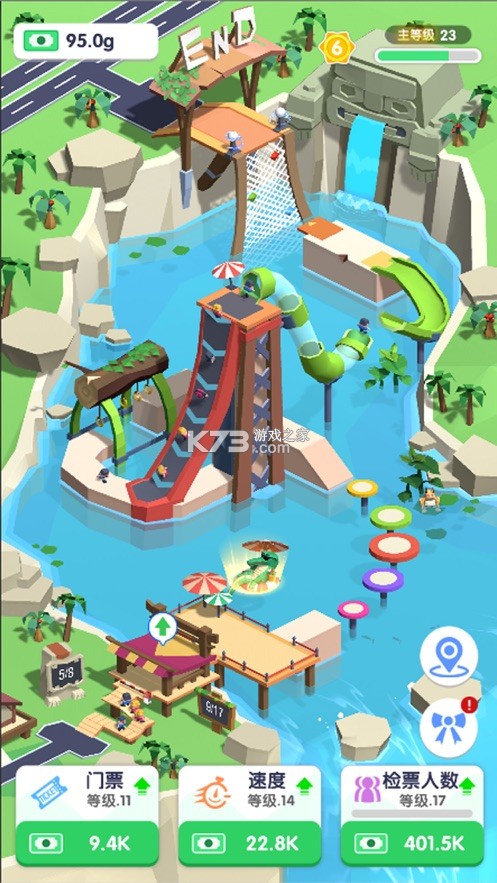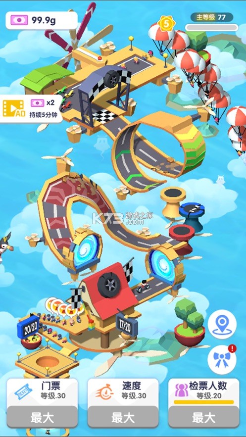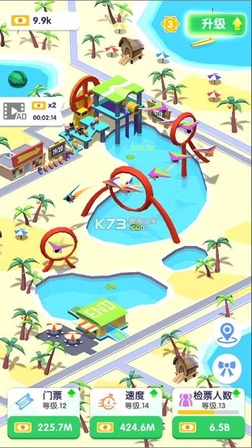 1、清新可爱的卡通风格设计,成功布置你的游乐场空间,实现创业的梦想;