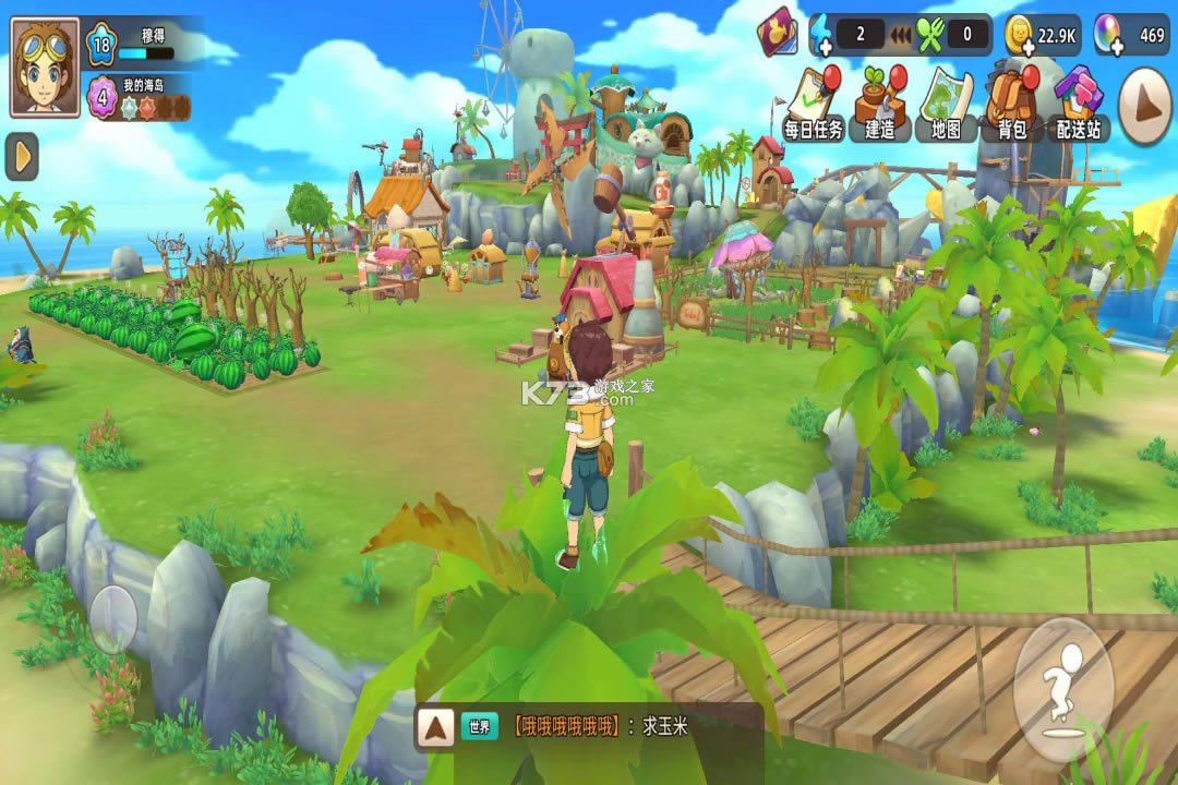 在海岛上,玩家可以开垦土地、收获资源、建造建筑、布置自己的小屋,挖宝藏等;