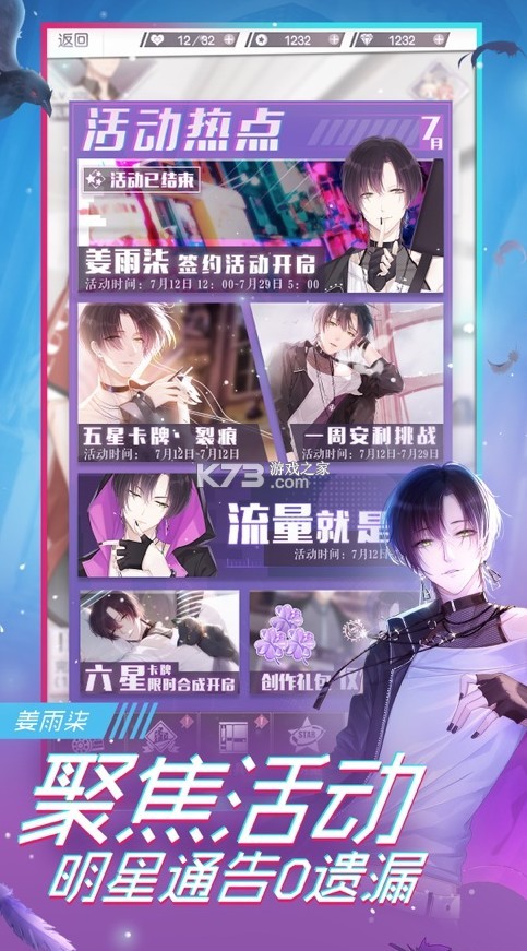 还原真实明星成长道路的游戏,以娱乐圈为背景。你作为经纪人,初创公司,渐渐邂逅了性格迥异的帅哥明星。