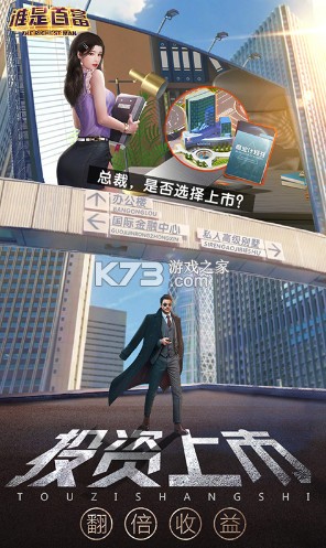 《谁是首富》每个致富浪潮到来时,有人一飞冲天,有人苦心经营,也有人落得满盘皆输。出身随机,但机会相同。选择,由自己把握,一步一步壮大自己的经济实力,成为世界知名的企业大亨以经典的商战题材为主。真实的商业战斗,投资股票各种玩法应有尽有,快来打响你的金融战斗吧。加入了文字剧情的模式,玩家在游戏中要想办法把自己的企业发展地更加强大,成为集团公司,赚钱更大的利润。