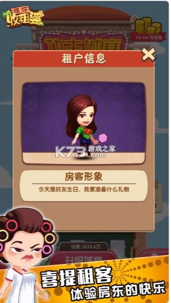 《疯狂包租婆》开启人生的游戏巅峰,建造独一无二的游戏城寨,你的好友过生该如何送礼呢,各种小游戏尽在其中,看视频看广告还能够得到更多的收益,不断的点点点即可来加入。