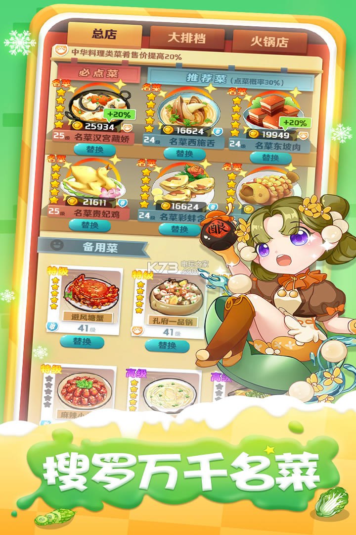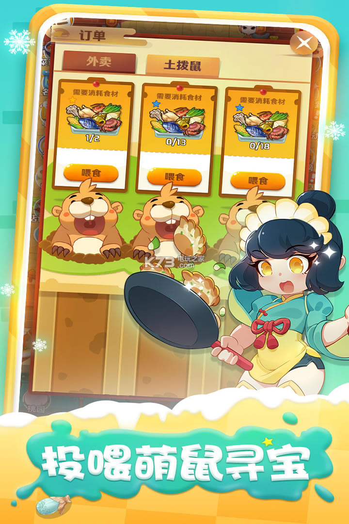 想拥有一家专属于你的餐厅吗?无需爆肝,动动手指挂挂机,即可获取大量金币爱心!无需重氪,就能解锁不同风格的可爱厨娘,陪你一起收集各式美食菜谱,下厨房,送外卖,经营你的餐厅!还有多种风格的家具装饰,等你随心装扮,打造个性餐厅!想减压?来这里!