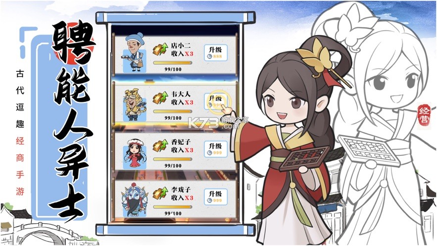 1、非常精致的中国风的模拟经营类型的游戏,在这里你可以去感受古代商铺的经营方式;