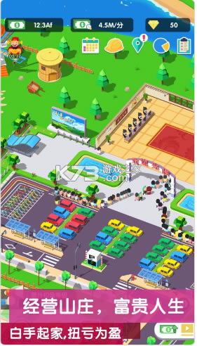 打造属于你的休闲山庄,成为旅游大亨,建造休闲娱乐区域,提升设备质量,更有不同风格和等级的山庄等你解锁