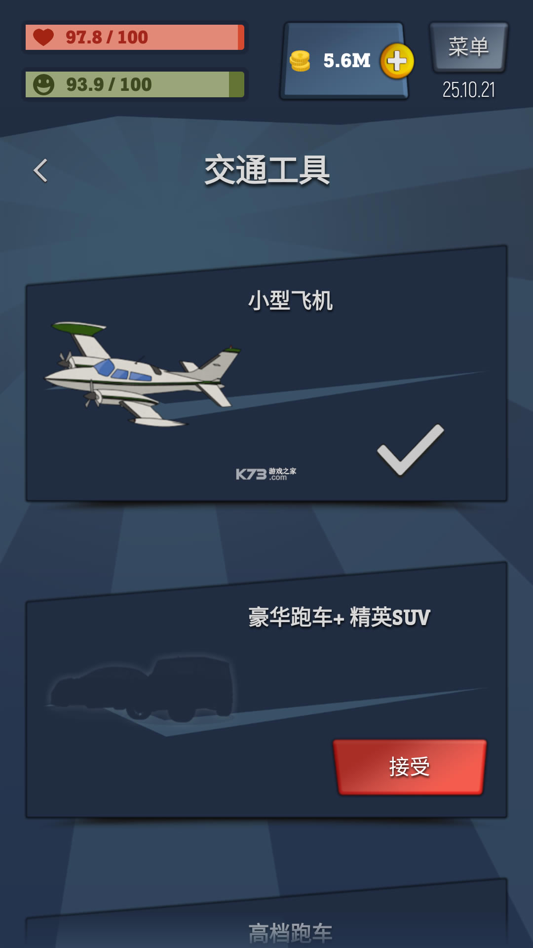 是一款画面精致的模拟经营游戏,在这里你将模拟一个人的一生,可以去找一份工作,比如快递员、收银员、出租车司机等,可以去租房子,当然也有着很多种选择,还可以去买衣服,买汽车等,注意观察角色的健康和精神值,可以去散步、聚餐、运动来提高数值。