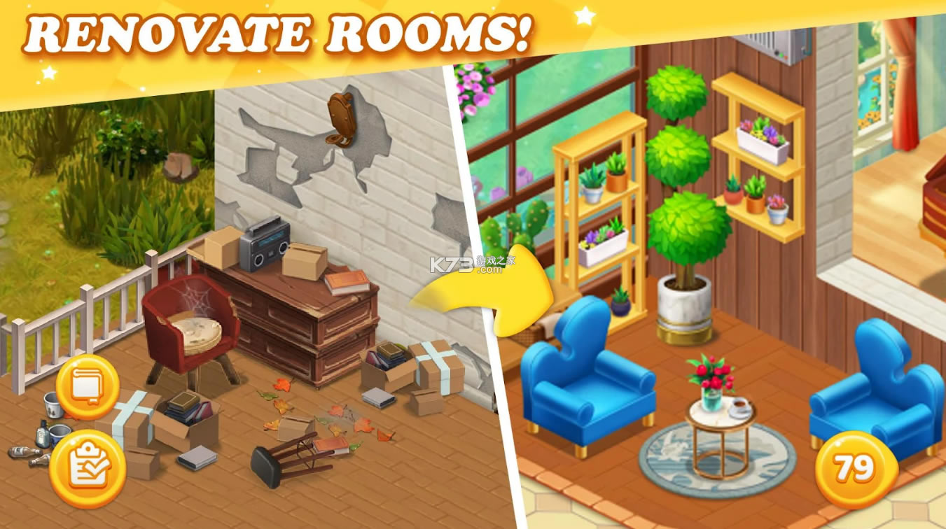 《梦想家园比赛(Dream Home Match)游戏》一款模拟经营类的养成游戏,游戏结合三消游戏的玩法,可以建立一个属于自己的梦想家园,打造一个梦想的生活环境,赶快来体验吧。