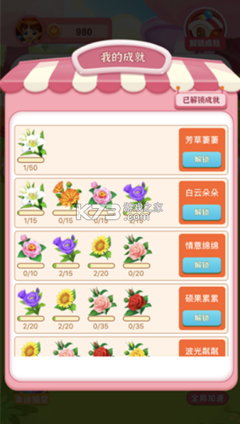4、不断扩大规模,种植更多的鲜花,收集到的鲜花还可以用来解锁成就