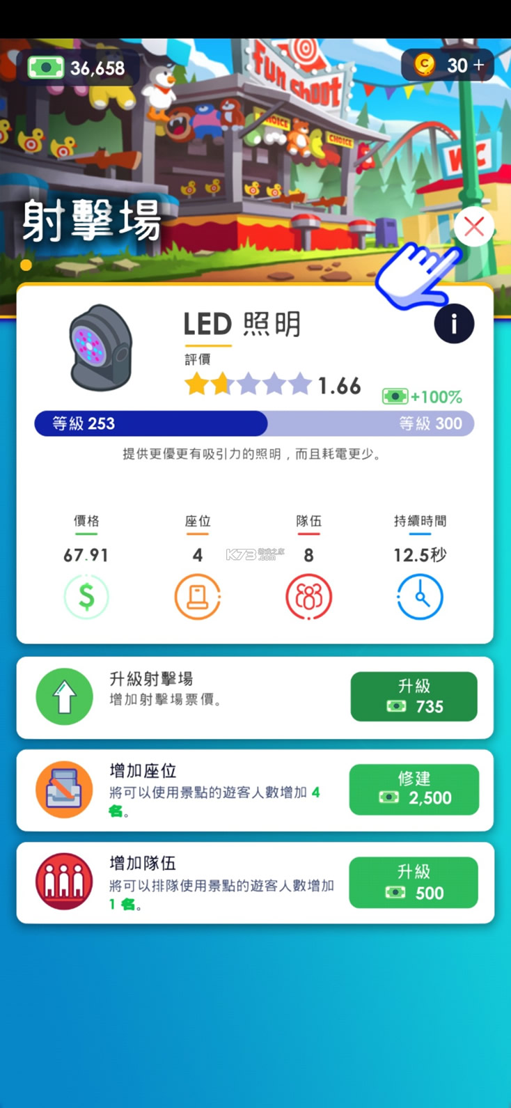 3、并且你还能不断的升级设施,更安全有趣的过程才能让游客玩的畅快。
