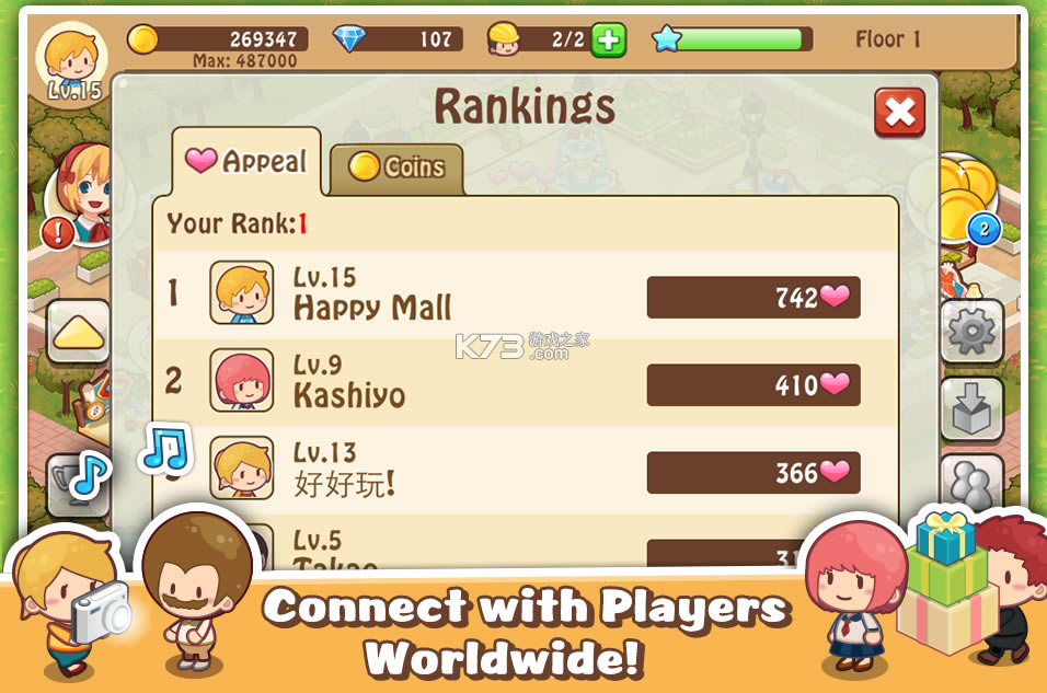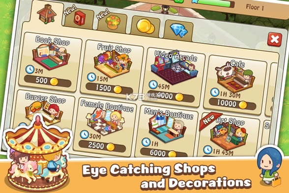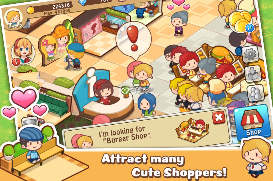 依自己的风格发挥你的创意,随心所欲的设计、布置、创造、拓展属于自己的购物商店!除此之外,要设法吸引更多可爱的顾客,举行大热卖,疯狂赚取金币!喜欢动漫的你,一定会喜欢我们超可爱的店主和顾客人物!游戏可离线玩,也可在线与全球玩家交流互动。谁会成为鼎鼎大名的超级商店大亨?