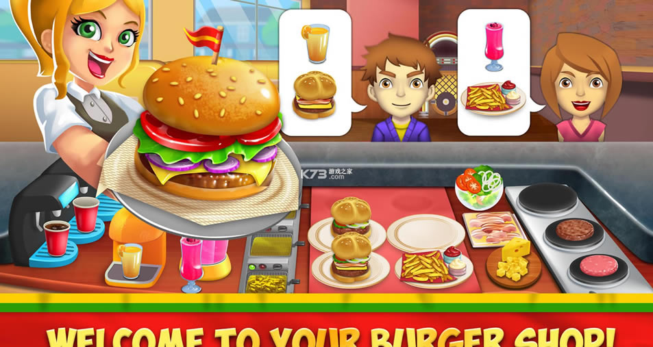在游戏中你需要经营一家汉堡店,不同的客人有不同需求,而你则是要挑出这些食物,放在盘子里拖拽给顾客。每售出一份食物就可以赚取游戏币,然后购买新的材料、饮料甚至新的物品来装修您的汉堡店,并让它变得更好!粉刷墙壁,更换地板,购买新托盘,灯光等等!随着游戏越来越后面,顾客需求会越来越复杂,你可以及时为顾客提供最好的服务吗?