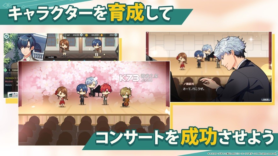 《金色琴弦星光乐团》游戏中你将为了梦想而努力奋斗,享受一个美好的人生,还有丰富趣味的故事剧情可以解锁玩耍,参加各种不同的乐团,还可以和角色一起进行互动闯关,享受更多精彩趣味的玩法,培养人物之间的心动指数。
