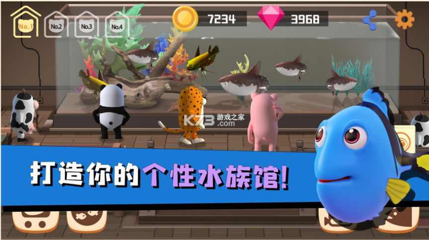 是3d卡通画风的休闲模拟游戏,大家需要经营一家属于自己的海洋馆,饲养各种可爱的小鱼,这里所有的海洋动物也都是萌系的造型,游戏的操作难度系数也不大,能够给与到大家的欢乐也是超级多,你在这里可以选择自己喜欢的鱼类并开始作战,这里还有丰富多彩的滑稽玩法在等待着你。