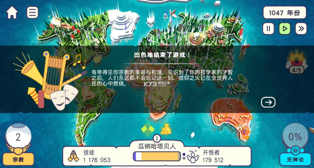 全方位视角方式,管理整个地球世界,教徒分配,资源获取。