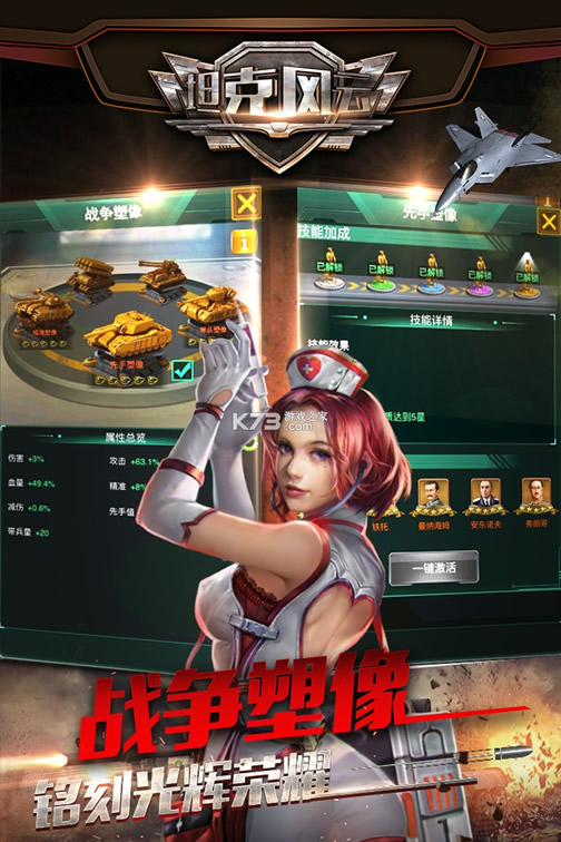 这里有辽阔的战场,能够容纳成千上万只装甲集团军在这里纵横拼杀;这里汇聚了古今中外战场上各式威名赫赫的主战坦克,能够让您组建一支前所未有的强大陆战之师;这里集中了最具现代化科学技术与高效装甲部队相结合,能够让您体验到现代化科技战争的无穷魅力;而这一切,只要您动动手指,即可体验“弹指间,樯橹灰飞烟灭”的快感!