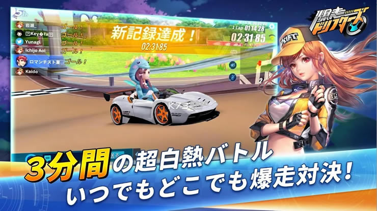 3分钟一局,随时随地都能和朋友飙一场!只要打开手机立即体验飙速甩尾快感!