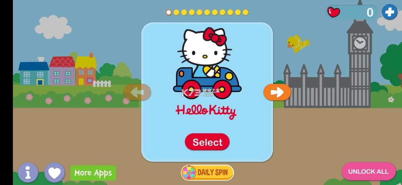 《凯蒂猫环球之旅(Hello Kitty Racing Adventures)》是一款画风非常治愈小清新的游戏。现在我们可以操控各种可爱的凯蒂猫踏上全新的冒险之旅,在各种特殊的关卡之中运用这些凯蒂猫来突破重重的障碍,解锁全新的车辆让你的冒险变得更为的有趣,使你的游戏玩起来更具乐趣。