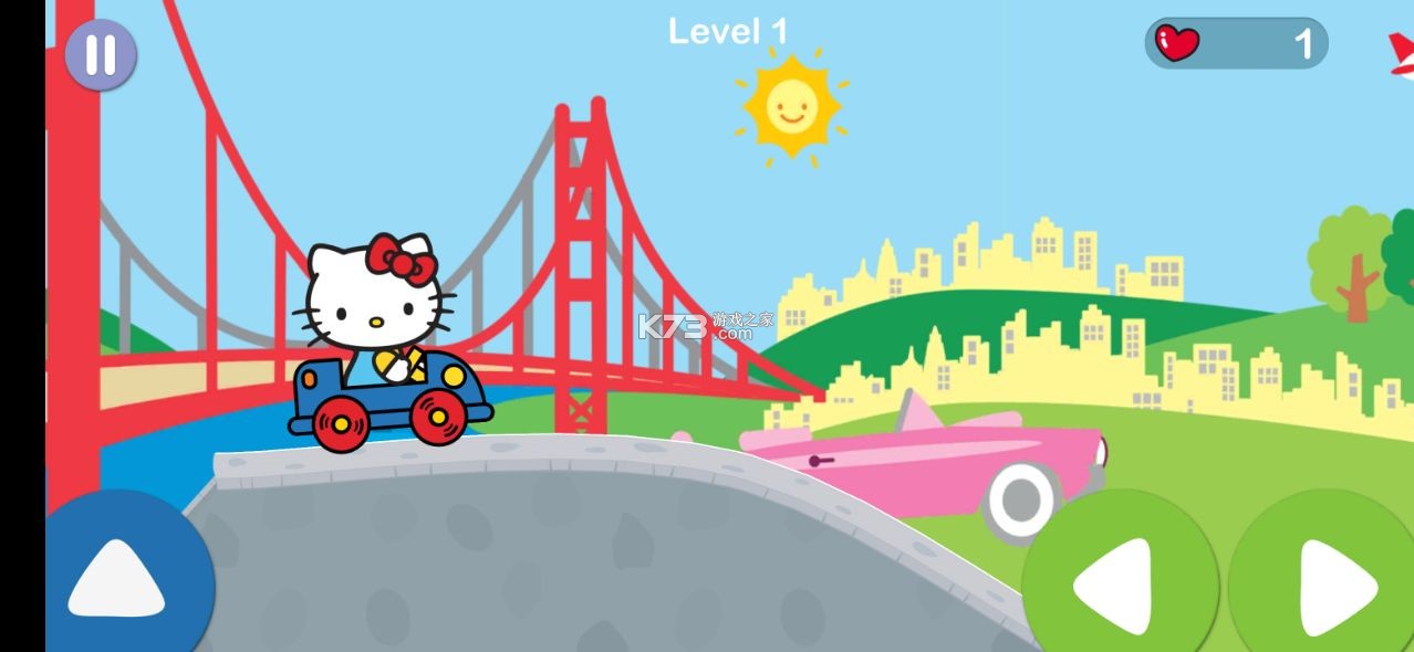 2、卡通风格的赛车竞速类型的手机游戏,游戏中可爱的凯蒂猫有着一辆非常可爱的小汽车;