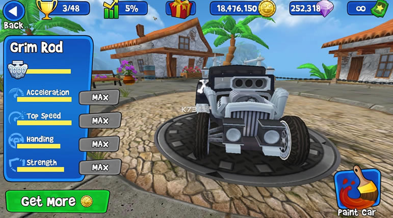 速度快、激烈、乐趣与免费,《沙滩赛车无敌版》是一个适合所有年龄段的赛车冒险乐园。